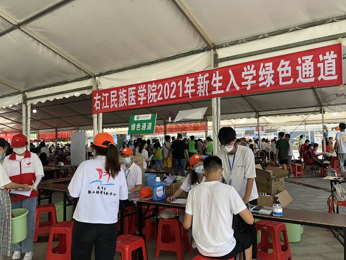 2021年9月11日,来自五湖四海的2021级新生相聚到BET体育365登录入口校园中。学校为积极贯彻落实党和国家的资助政策,“不让一个学生因家庭经济困难而失学”,在知新广场设立了“绿色通道”为2021级新生入学无忧保驾护航。
